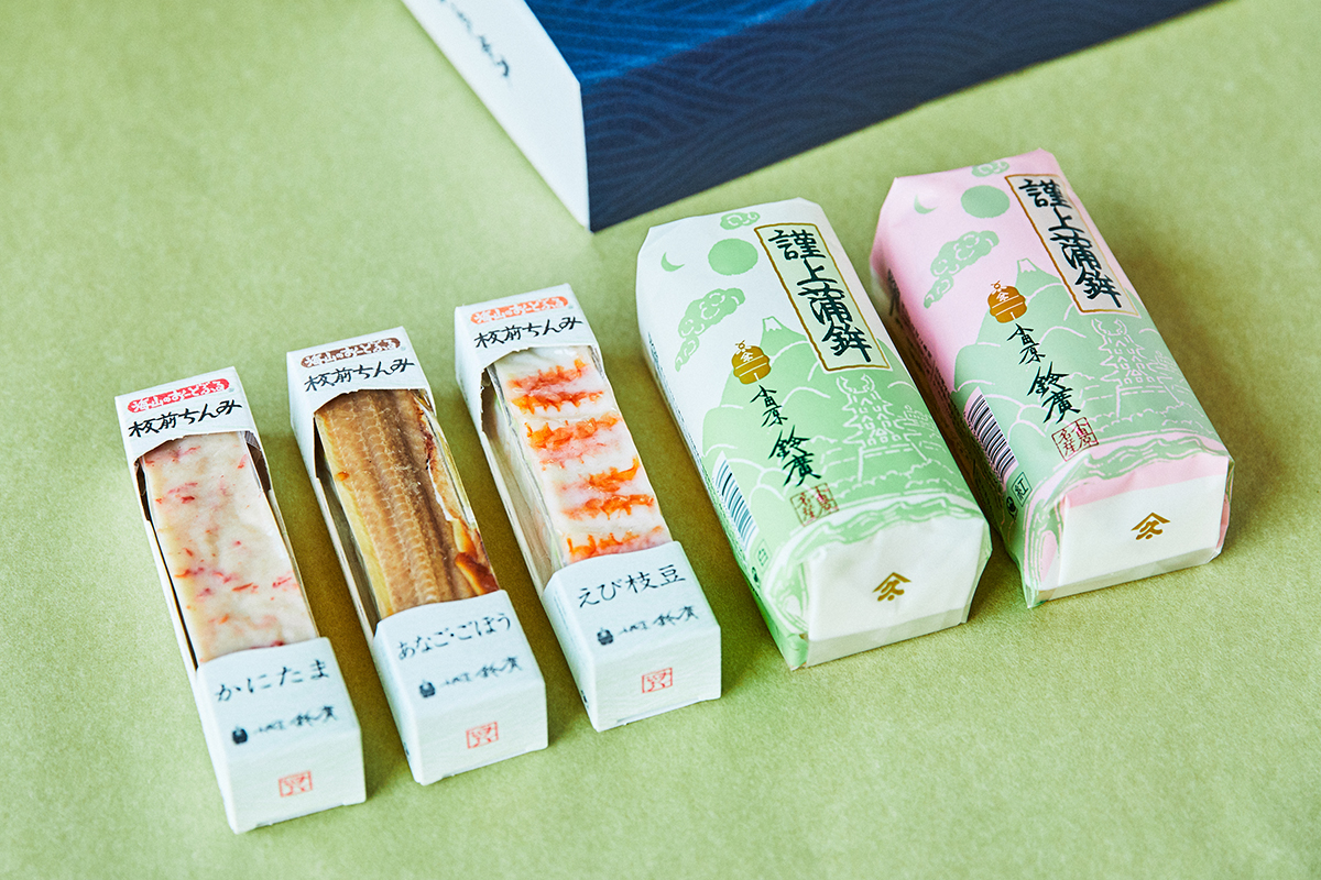 今回使ったのは、鈴廣の「謹上蒲鉾」です。天然のグチの弾力を思う存分楽しんでいただけます。澱粉や化学調味料などの添加物を一切使わず、魚の鮮度管理と職人技で作った魚本来の味わい。魚の身は一年を通して質が変わりますが、もっともプリッとした弾力になる時期にとり、浜揚げしてすぐにすりみにします。「謹上蒲鉾」は柔らかすぎず、コリコリと固いわけでもなく、しなやかな歯ごたえが特徴です。