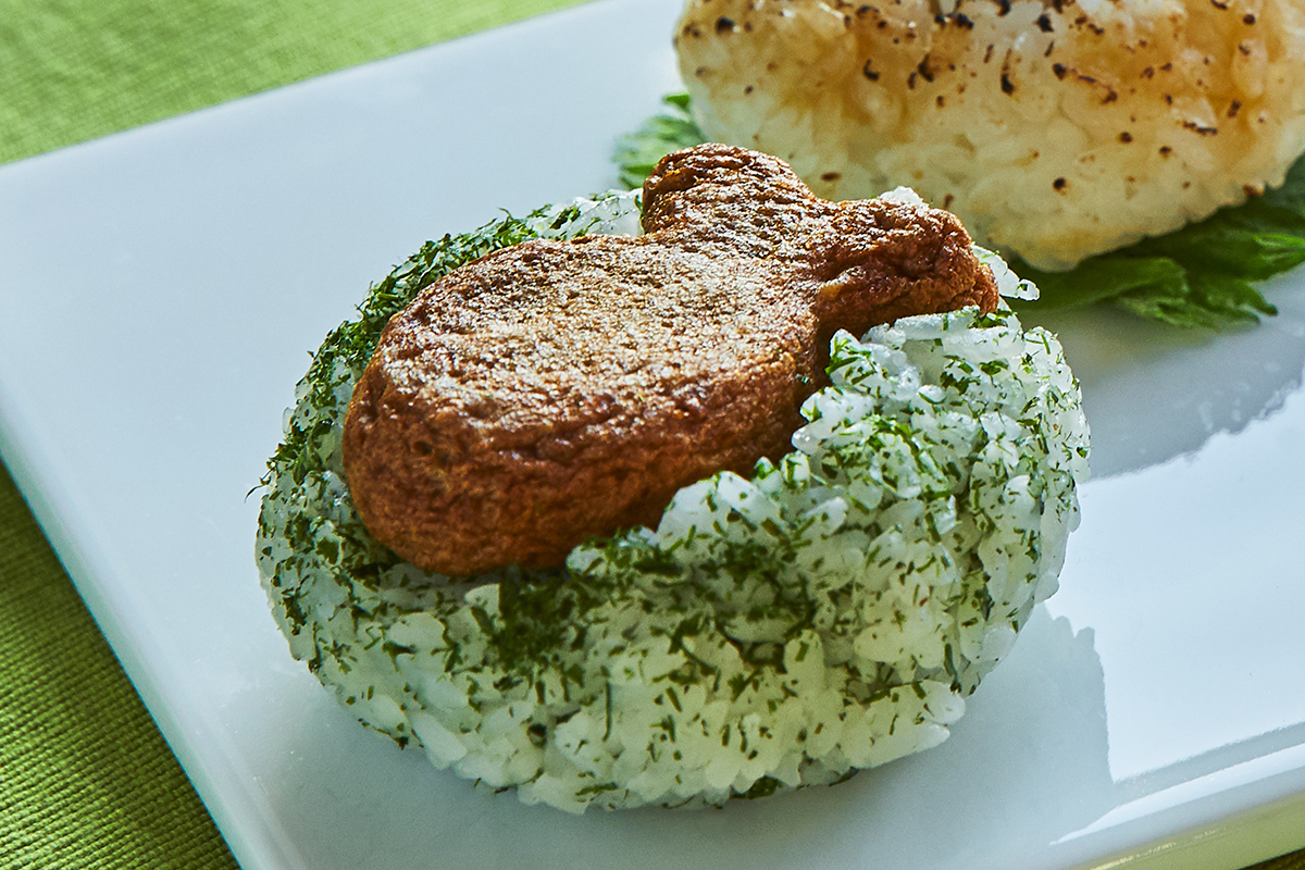 一つ目は「ぷちかま」をのせた焼きおにぎりです。「ぷちかま」はチーズや明太マヨが入った一口サイズの焼きかまぼこ。魚のタラとグチを黄金比で配合することで、もっちりつるりとした新食感のすりみが人気の商品です。