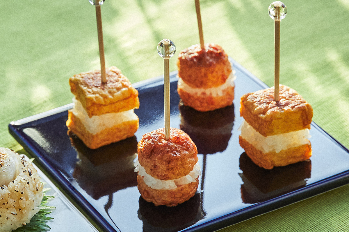 今回は「お好み十選」の「えびボール」と「ふっくらさつま」を選びました。「えびボール」は海老入りでプリっぷり、「ふっくらさつま」は山芋を入れてはんぺんのような食感を作り出しています。小さなかまぼこで小さなおにぎりを作れば、いくつでも食べられますね。様々な種類の小さなかまぼこおにぎりを楽しんでください。