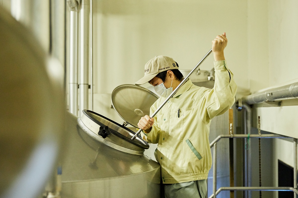 まず、濃厚さのカギとなるのは、麦芽を焙燥する度合いを強めて色を濃くしたカラメル麦芽。香ばしい味わいが特徴のこのカラメル麦芽を使うことで、味噌や醤油にも似た奥深い甘みと苦味を引き出しています。カラメル麦芽は焦げたような苦味もでるので、同じく苦味のもととなるホップは控えめに使用。また、エールビールには一般的に香りの強いエール酵母を用いますが、「小田原エール」にはあえてすっきりとした味わいに仕上がる「箱根ピルス」と同じ酵母を使うことで、甘みや苦味を少しだけ抑えました。こうすることで、上面発酵で引き出した麦芽の濃厚な旨みを際立たせつつ、全体のバランスをとっています。