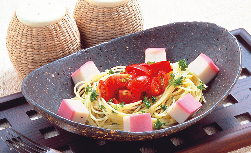 「トマトとかまぼこの冷たいパスタ」4人分