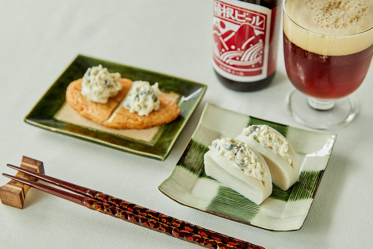 カラメル麦芽を使うことでフルーティな香りと深い旨味があり、わさび漬けや玉ねぎによく合います。また、ビールの爽やかな泡がマヨネーズのクリーミーな余韻をすっと流してくれるのもいいところです。