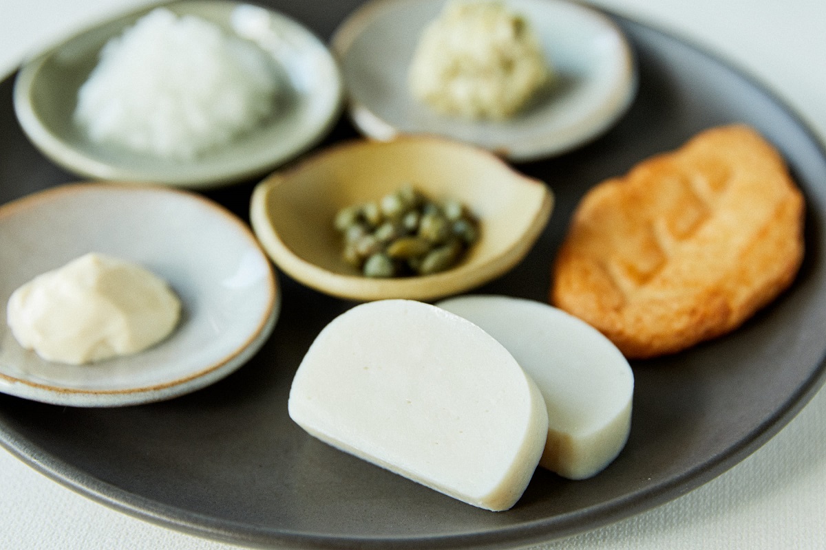 板かまぼこの最初の一枚は何もつけず、二枚目三枚目はわさび漬けで楽しんだら、ちょっと風変わりな「わさび漬けタルタル」でいかがですか。