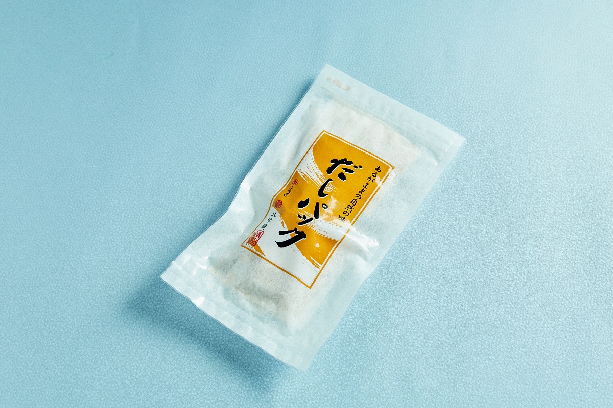 かまぼこママさんが忙しい時に重宝するとおっしゃるのが、小田原にある久津間のだしパック。宗田がつお、鰹、サバ、いわし、椎茸、昆布がブレンドされており、しっかりとした出汁がとれます。