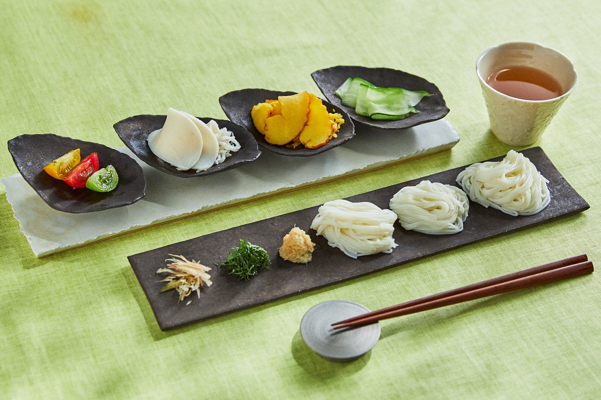 「私の亡き母は、夏にお客様がいらっしゃると必ずお素麺を出していました。お素麺なんて、おもてなし料理になるの?とよく聞かれるのですが、なるんです。いろいろな薬味を用意して、それを細く細く針のような千切りにします。すると、誰もが『わぁ素敵』と思うお料理になりますよ」とかまぼこママさんはおっしゃいます。