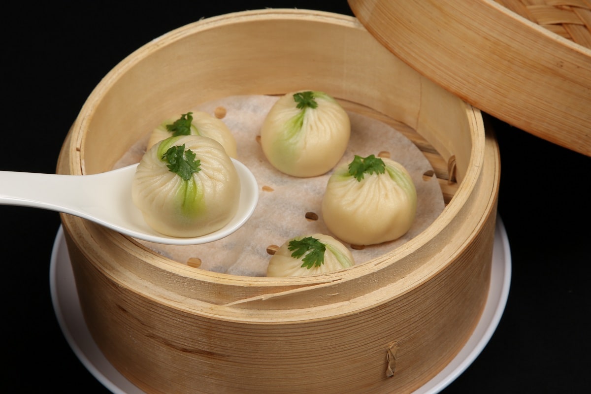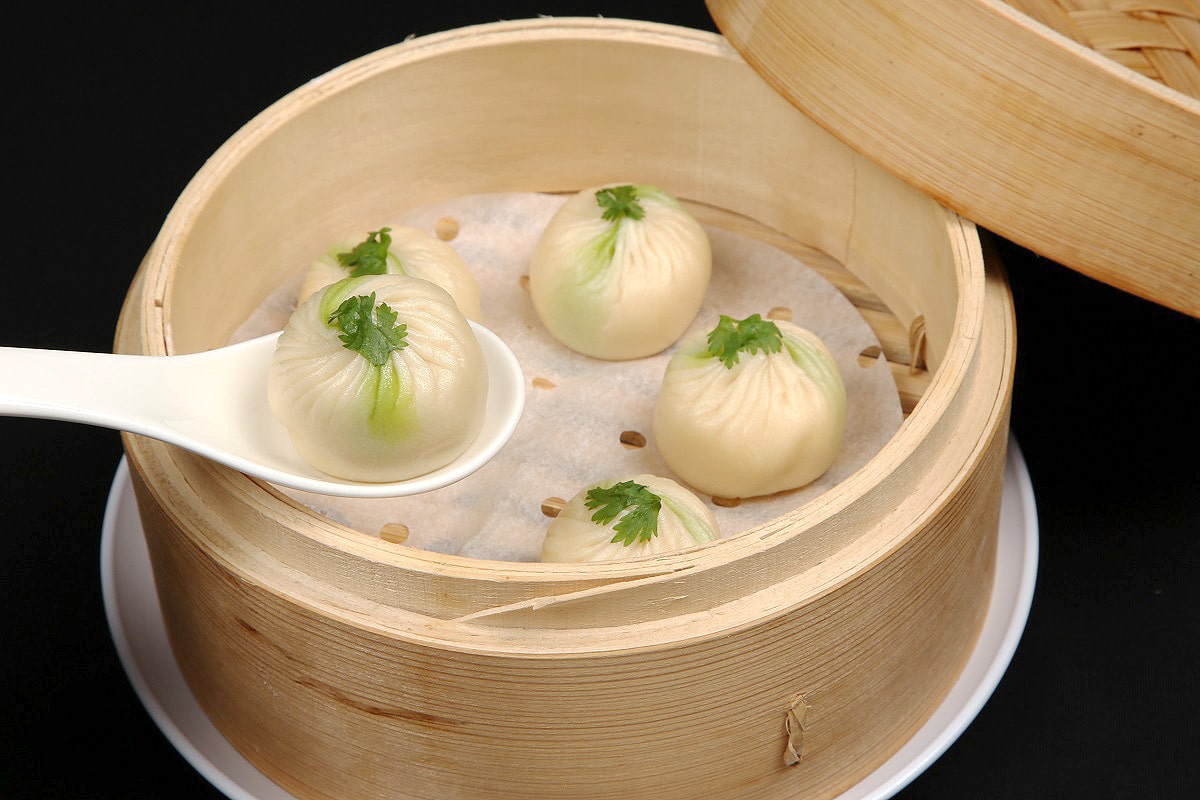 まずは点心から。瀬戸内海・愛媛県で水揚げされた鯛、そして風味豊かなパクチーを餡に加えているのが「パクチーと鯛の小籠包」です。中華圏では、「山珍海味(さんちんかいみ)」(海産物と農産物)を組み合わせた料理が好まれます。「おめでたい」という言葉につながる日本の良質な鯛と、東アジアのスパイシーな料理に欠かせないパクチー、それぞれの味わいを生かしたこの小籠包。万能すりみパウダーを使うことで、食感が良く、より旨みや甘みが楽しめる一品に仕上がっています。
