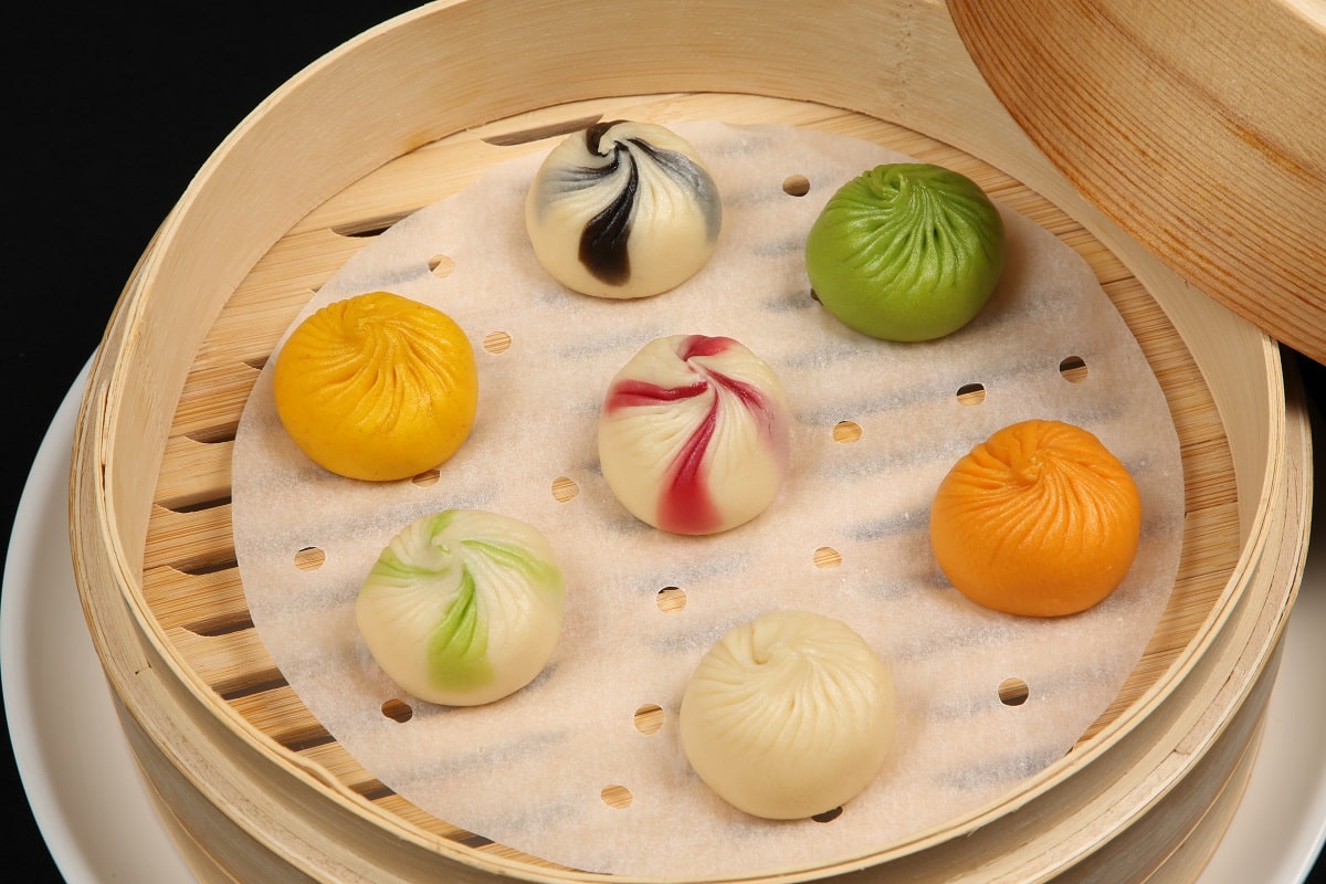 點水樓はこの伝統を重視し、厳選した旬の食材を使った江浙料理ならではの丁寧な調理法を守っています。その姿勢は、看板メニューの「天然野菜の七彩小籠包」にも見て取れます。多くのお店では、小籠包の皮の折ひだは14程度。點水樓では、より薄い透明感のある皮を使い、19もの折ひだをつけることで、よりジューシーで食べごたえのある小籠包を提供しています。台湾全土はもちろん、日本国内にも多くのファンがいるのもうなずけます。
