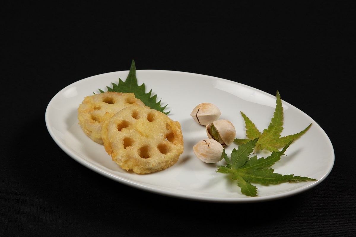 穴が空いていることから、「先が見通せる」縁起の良い食べ物であるレンコン。中華圏ではこの穴をコインに見立て、「財宝を呼ぶ食べ物」として珍重されています。點水樓の「レンコンはさみ揚げ」は、茨城県・霞ヶ浦産の選びぬかれたレンコンを使用。なめらかなすり身をたっぷり挟んで揚げることで、サクサク・ぷりぷりの異なる食感を同時に楽しめます。
