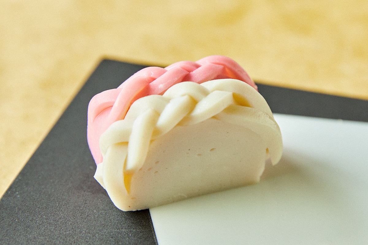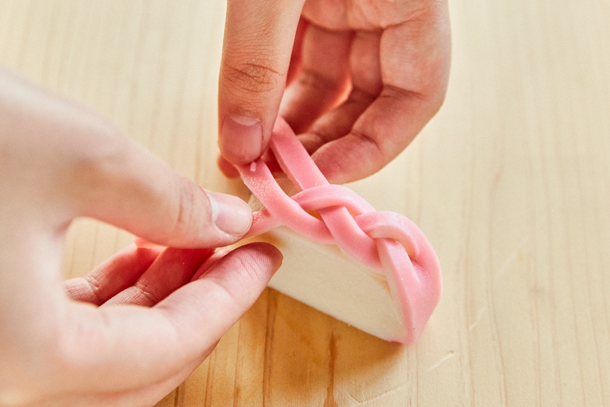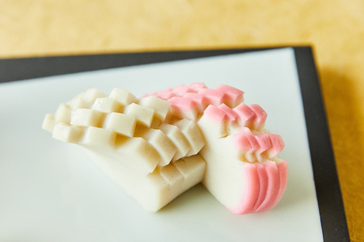 かまぼこの表面を三つ編みにします。日本では昔から三は縁起の良い数字。奇数は割り切れないため、縁が途切れないことと結びついてきました。