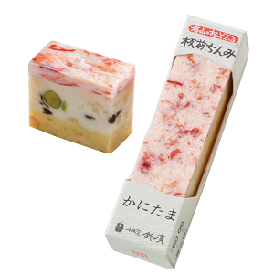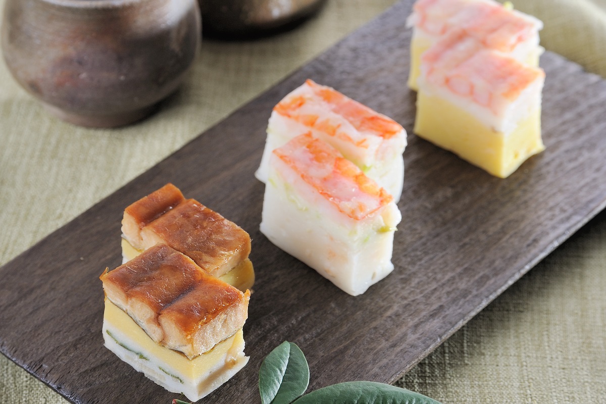 海老や穴子や蟹肉は肉厚の身をそのままのせております。それらの素材の旨味や食感が、なめらかなすりみと口内でいっしょになるとき、美味しいハーモニーを奏でます。