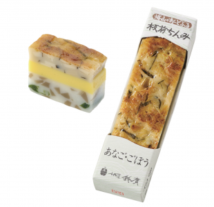 「海山のおーどぶる」は、職人手づくりの白身魚のすりみをベースに、海の幸・山の幸を合わせたテリーヌのような前菜です。鈴廣七代目鈴木廣吉が、箱根の旅館で出される美しき懐石料理から発想を得て作りました。