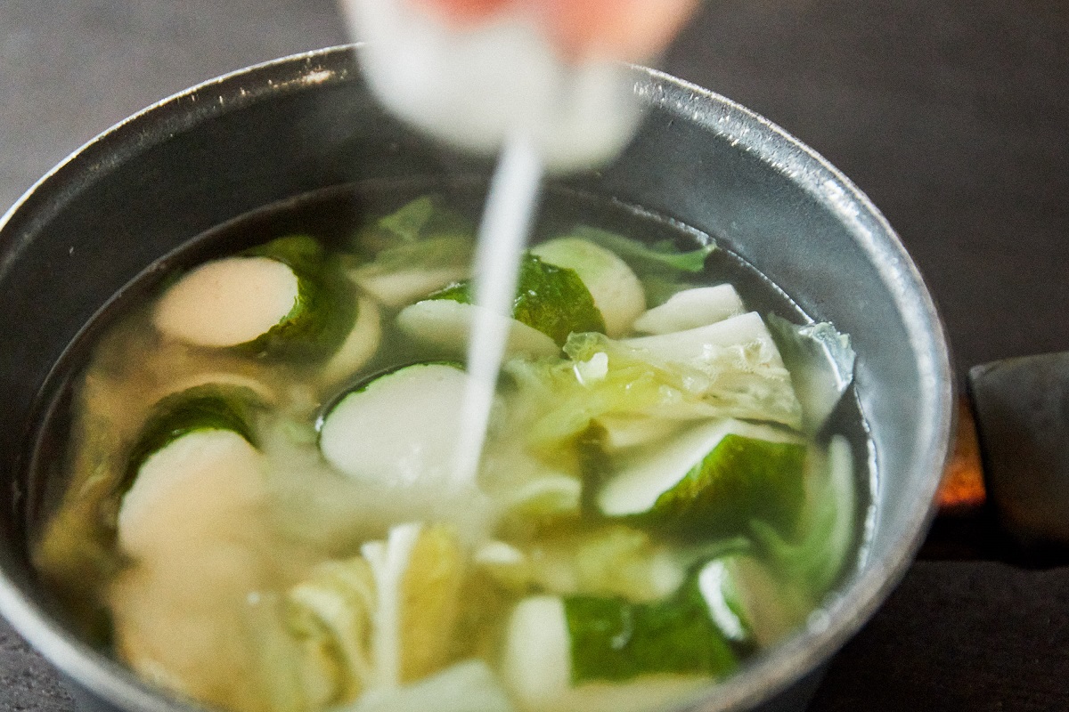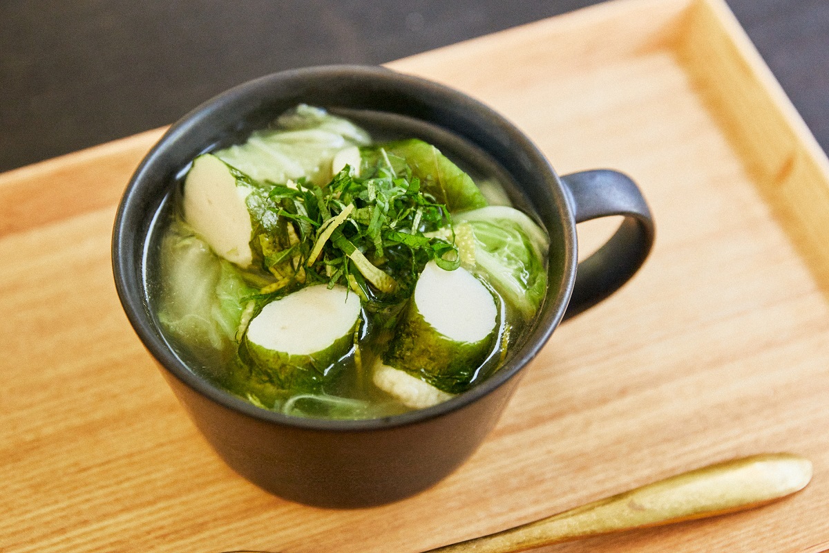 かまぼこでおいしく”タンパク質“「しそかをり巻の白菜柚子スープ」