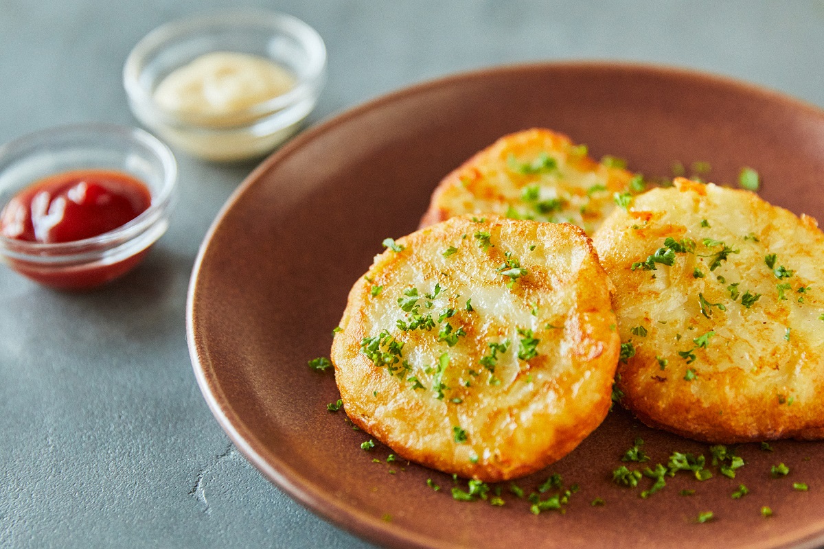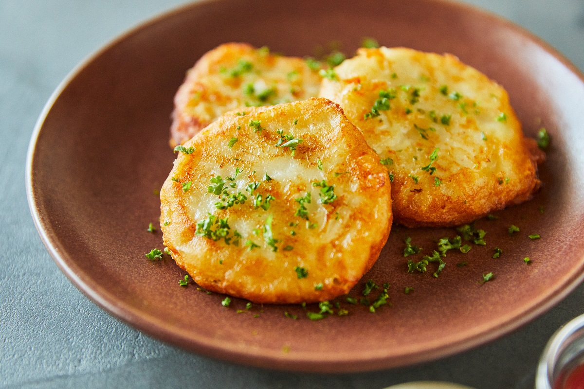 ほくほくのじゃがいもとチーズの中に、生すり身を混ぜてカリッと焼きます。