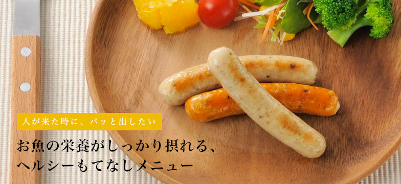 他には無い、お魚なのにソーセージの食感で始めての方にも無理なく召し上がれる一品をお楽しみ下さい。