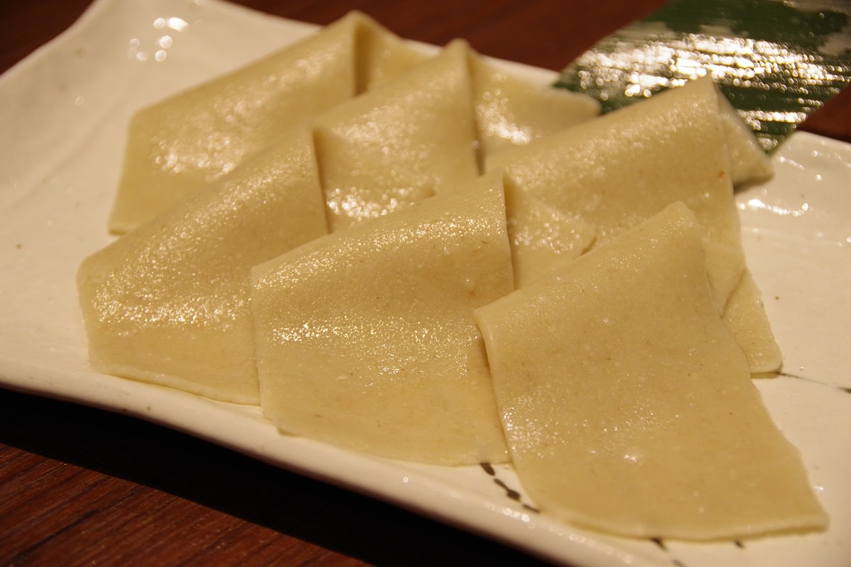 ―― おすすめの蕎麦前のひとつめは「蕎麦の刺身」。初めて食べますが、すごくもちもちしていて、風味も豊かですね!