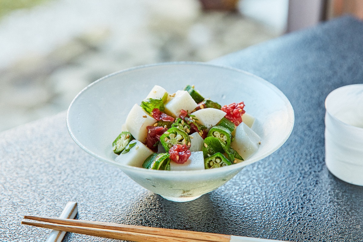 オクラ以外にも、春にはキャベツや筍、夏にはきゅうり、秋冬には茹でたほうれん草や春菊など、旬の野菜とお楽しみください。