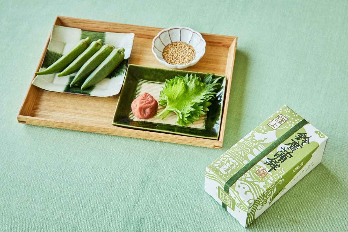梅干しと大葉、オクラに胡麻。