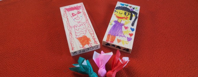 かまぼこ板を使った羽子板の作り方です。とっても簡単。たったの5分で出来上がりました。かまぼこ板を洗って乾かし、そこに正月らしい絵を書くだけです。羽子板でつく羽根はビー玉を折り紙で包んで作りました。
