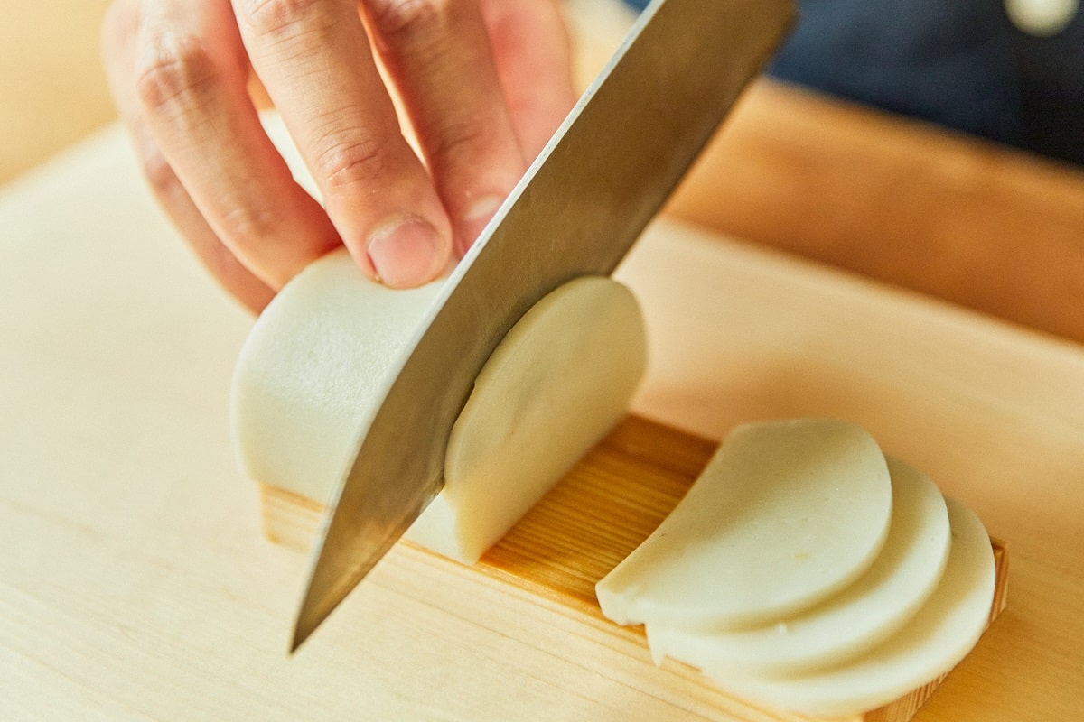 ① 特上蒲鉾を2~3mmにスライスする