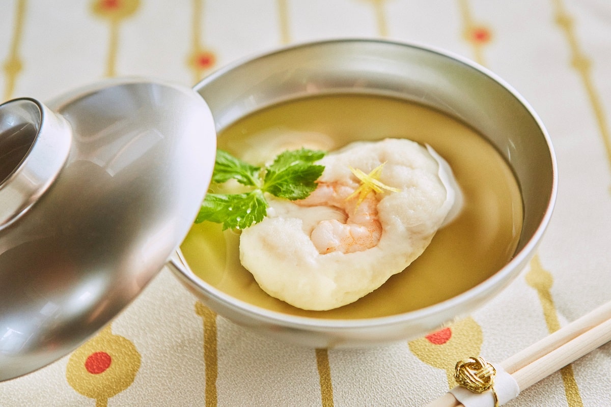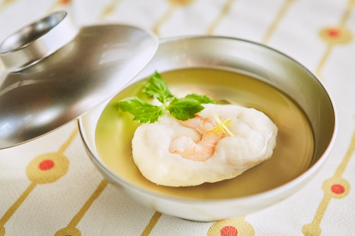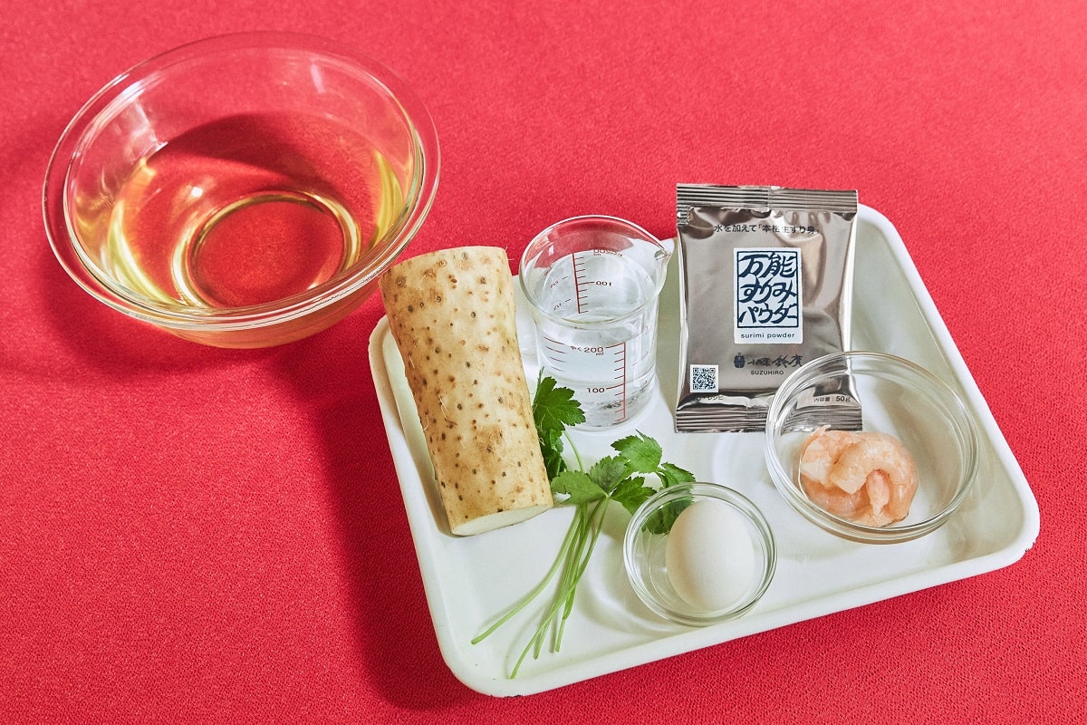 しんじょとは、すり身に卵白、山芋や長芋を混ぜて蒸したり茹でたりしたもの。ふわふわでぷるんとした食感の、上品でやさしいお味です。