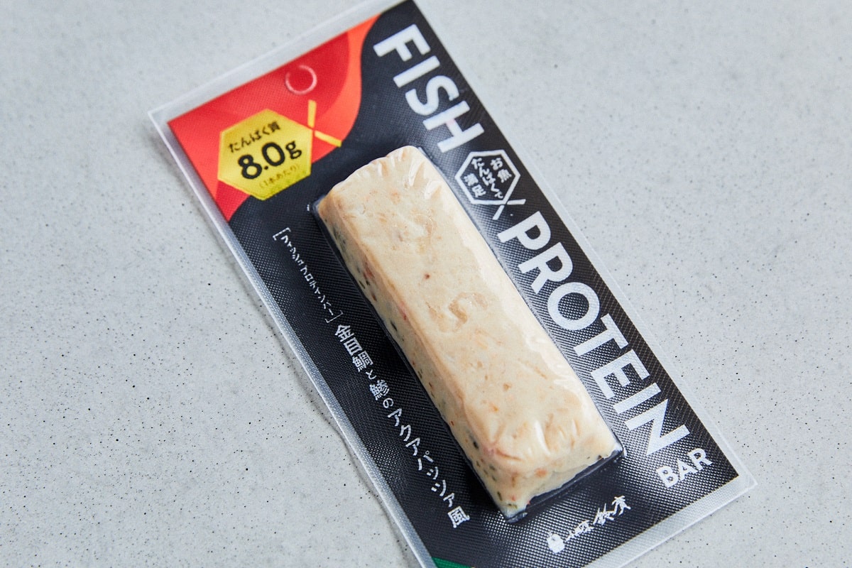 スポーツを楽しむ人はもちろん、お子様から高齢者まで幅広い年代の方においしく栄養補給していただきたい、という思いがぎゅっと込められた「FPB(フィッシュプロテインバー)」。「金目鯛と鯵のアクアパッツァ風」は、魚の濃厚な旨みが引き立つ食べ応えたっぷりな一本。高たんぱく食品の一歩先をいくおいしさに挑戦しました。