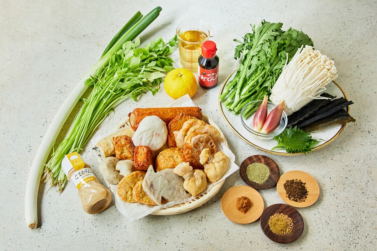 さっぱり出汁で温めたおでんを、ゆず、ネギ、山椒や柚子胡椒、ごまだれなどでいただきます。今日のレシピは、薬味たっぷりのしゃぶしゃぶおでんです。
