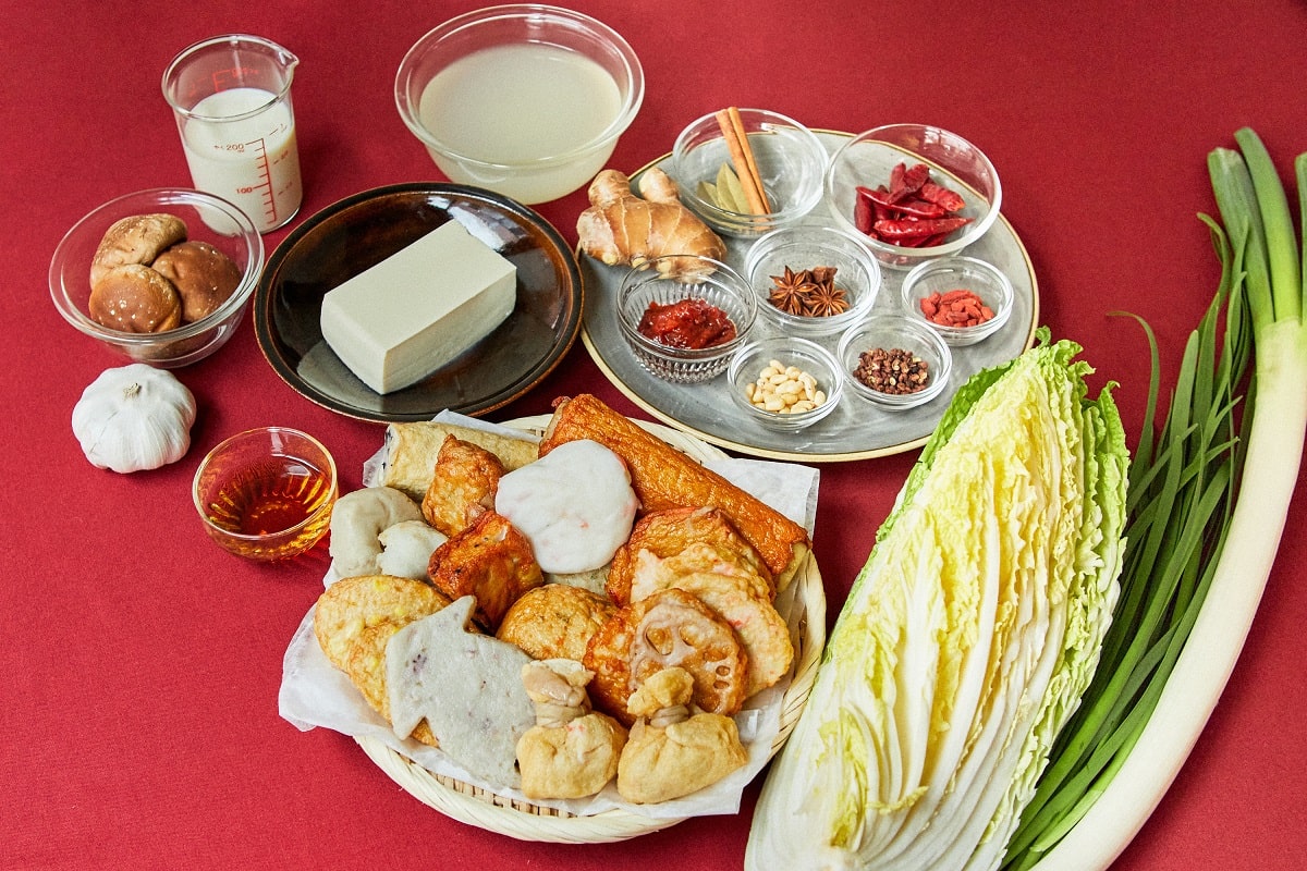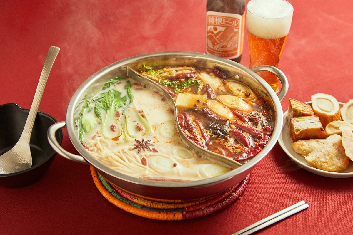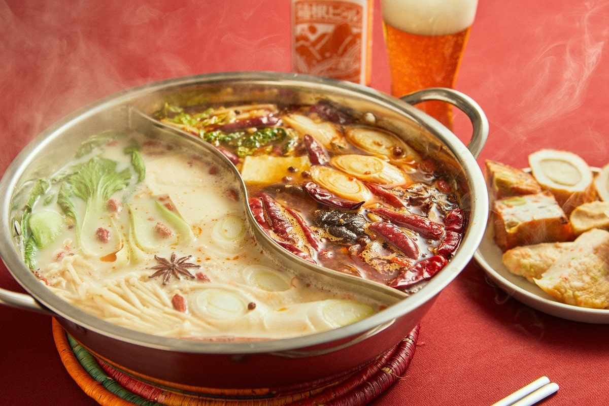 本場の火鍋にも白身魚のすり身ボールは欠かせない具材です。花椒や八角などのスパイスの香りとしびれる辛味が、魚介の旨みがぎゅっとつまったおでん種を引き立てます。