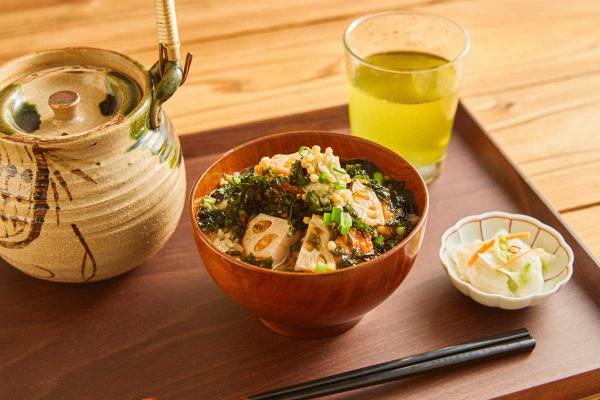 お茶漬けにおすすめなのが、シャキシャキ食感の「れんこん揚げ」です。厚めに切ったれんこんを、旨みを引き出すために低温でじっくり長く香ばしく揚げています。