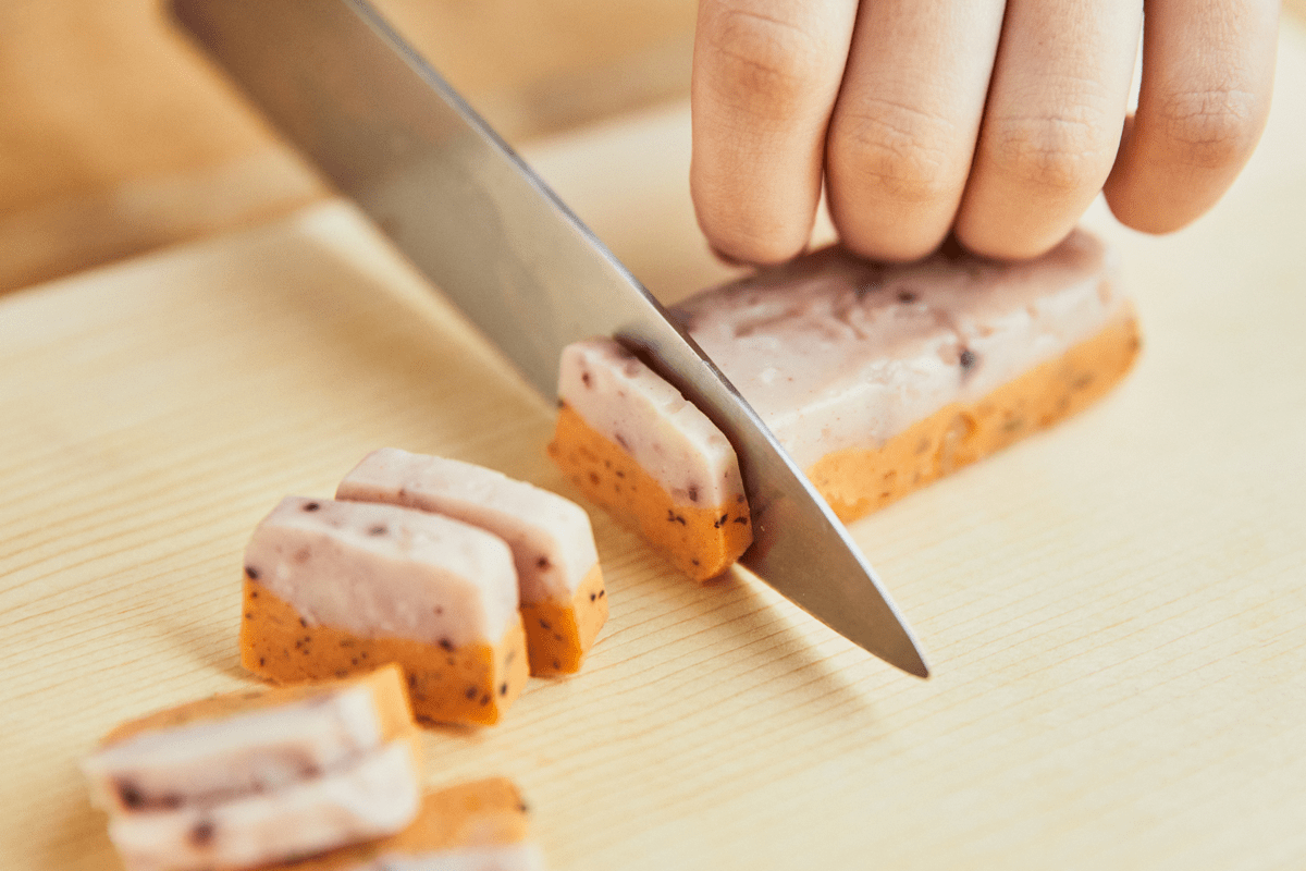 「FPB(フィッシュプロテインバー)」は美味しさを追求した鈴廣のプロテインバーです。白身魚のすり身の中に魚介や野菜もふんだんに加えることで、お料理の一品を食べているような満足感を得ていただけると思います。