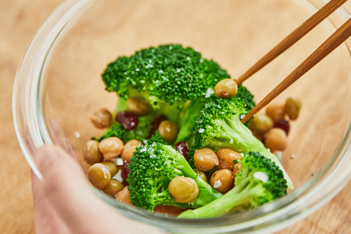 ③ FPBとミックスビーンズ、ブロッコリー、塩を混ぜる