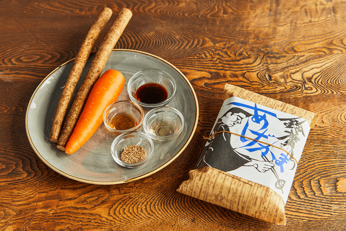 ① 「あげかま」を5㎜くらいの薄切りにする。ごぼう、人参は同じ長さの千切りにする