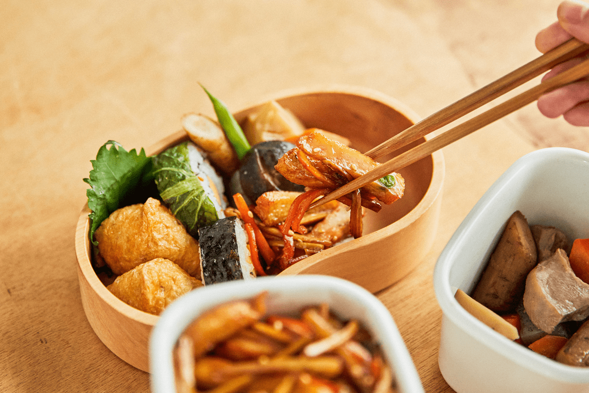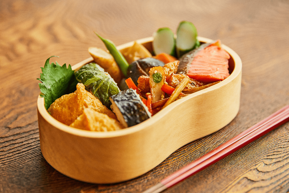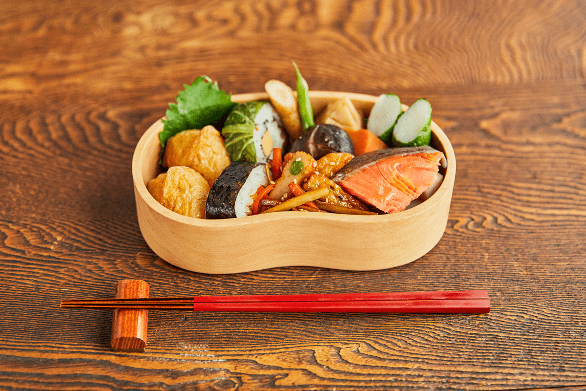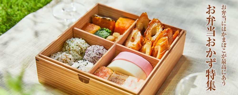 今回のあげかまのきんぴらを詰めたお弁当には、鈴廣の「わさび漬け」、「しそかをり巻」「べにさけ味噌漬け」も合わせました。