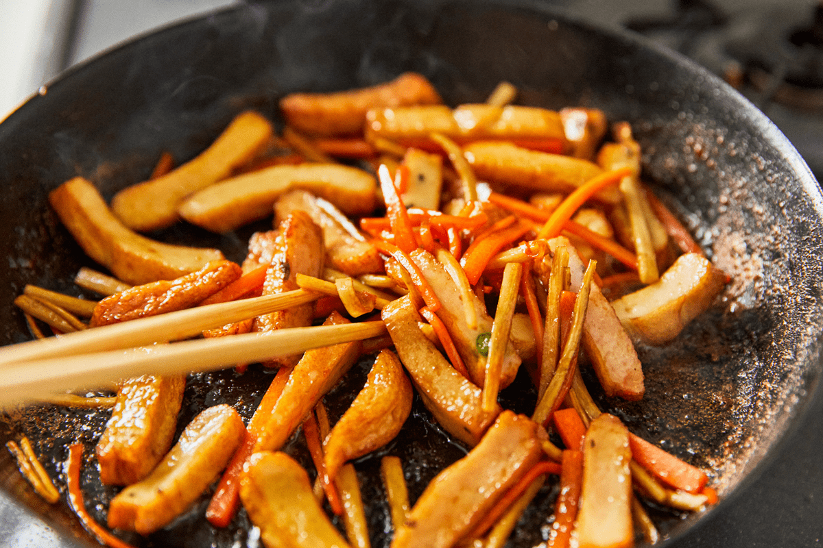 炒め物にあげかまを加えると、魚の旨みとプリッとした食感が加わって、満腹感のあるおいしい主菜になります。中華炒めや味噌炒めなどにもお使いください。