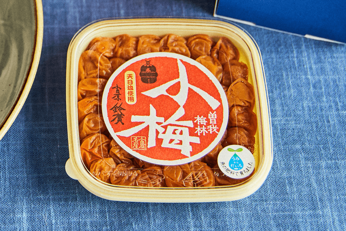 「小梅」は鈴廣の特製魚肥で育てた梅から作った昔ながらの梅干しです。すっぱさのなかに、まろやかな塩味が広がります。