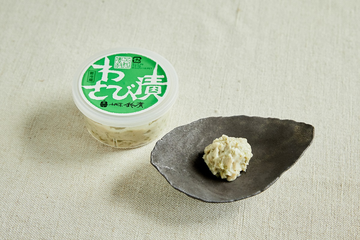 今回のお茶漬けの薬味にはわさび漬けを選びました。粗めに切ったわさびを灘吟醸の酒粕に漬けており、シャキシャキっとした食感と芳醇な香りがいい余韻を残します。