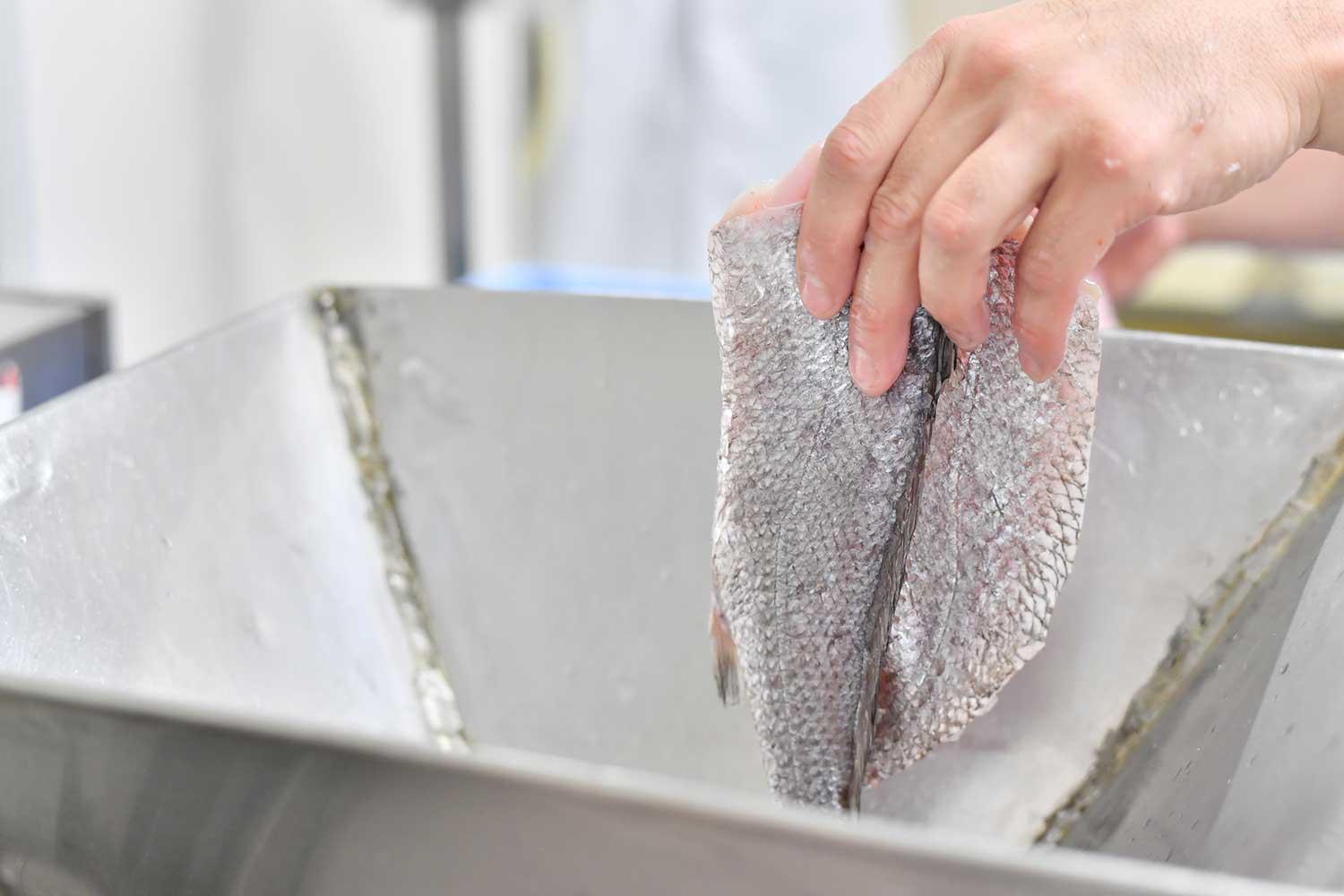 機械をつかって身を採る際に魚に刃を入れる角度や深さ、または皮や骨を取り除く部分の圧力を調整し、採肉度合いをコントロールする必要がある。