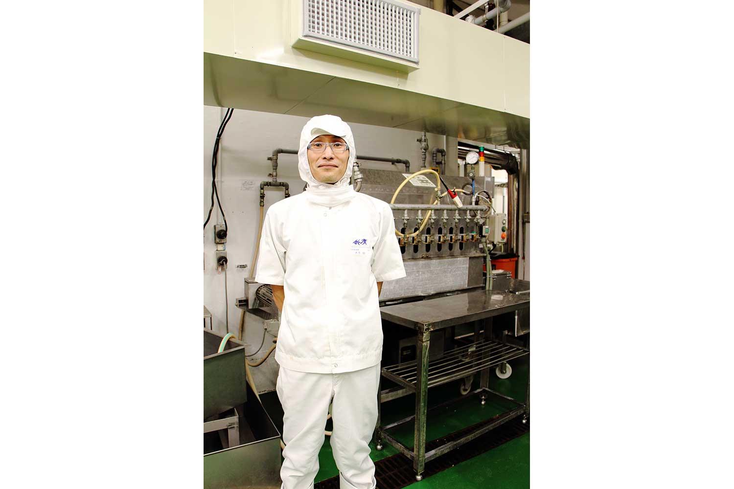 木下は高校卒業後の2003年に入社。以降、手作業のみで作る伝統製造課一筋という筋金入りの職人だ。とはいえ、入社当時は苦労の連続。高校時代の実習でさつま揚げを作った経験があり、そこで練り物製造の楽しさに目覚めたものの、実際に職人の世界に飛び込んでみると右も左も分からない。