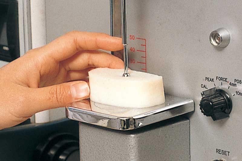 写真上:弾力を数値化して記録している