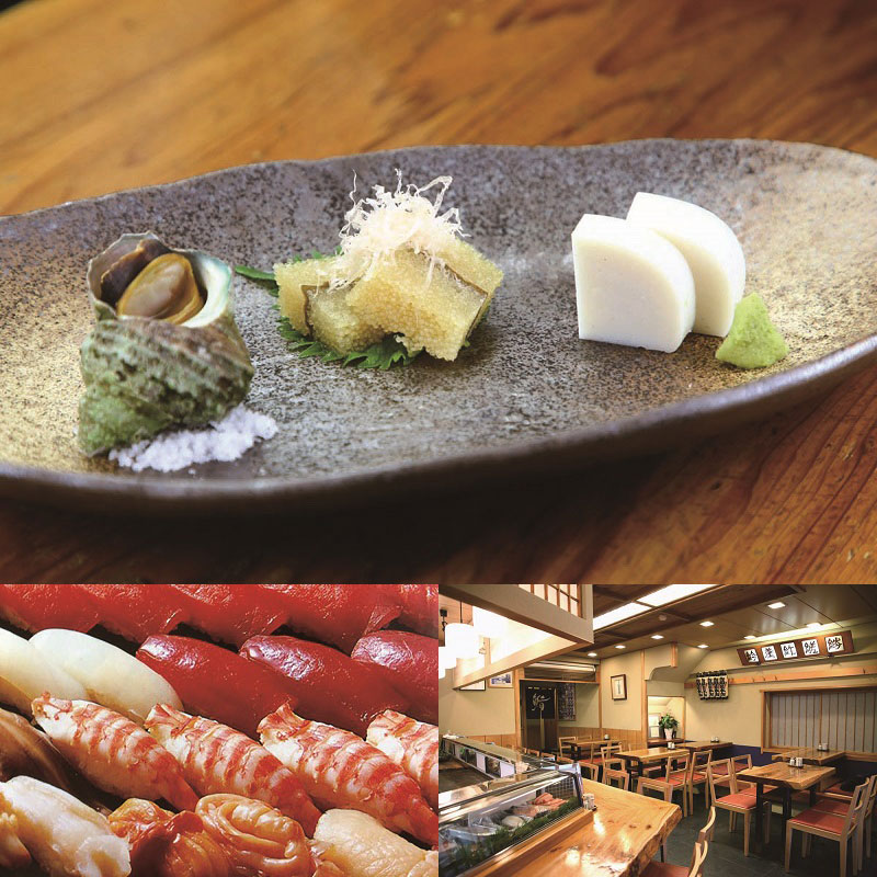 昭和初期に始めた繁乃鮨。前身は日本橋魚河岸の魚商「高根屋」として宮内庁御用達を拝命、現在も続く。目利きの板前が選ぶネタに、かまぼこが食感を添える「ちらし」をどうぞ。