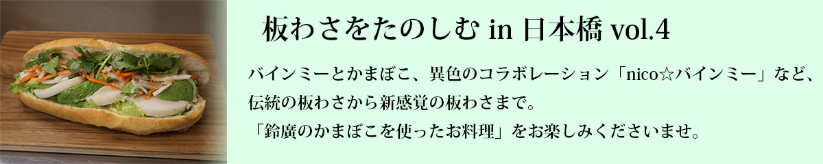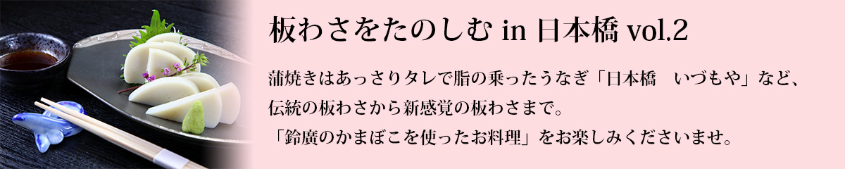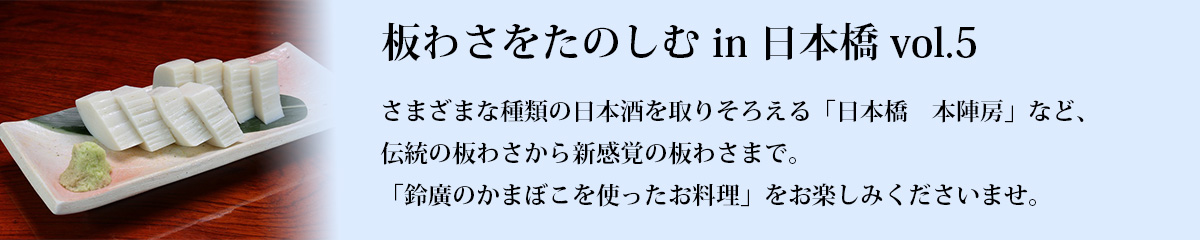 板わさを酒の肴に一杯。伝統の板わさから新感覚の板わさまで。 店主が腕を振るった「鈴廣のかまぼこを使ったお料理」をお楽しみくださいませ。