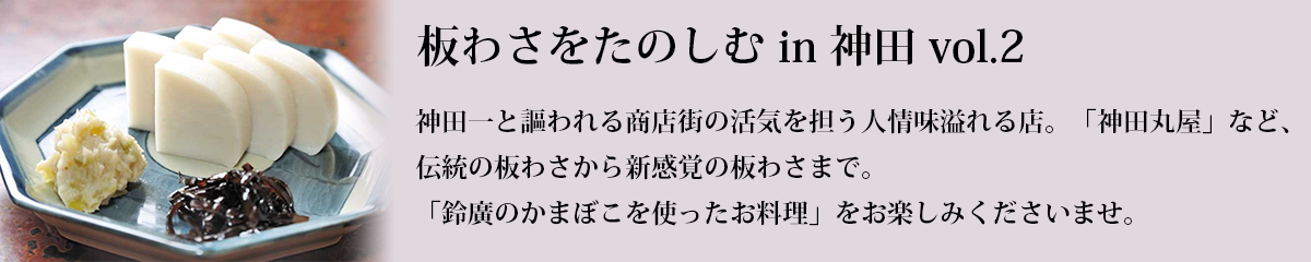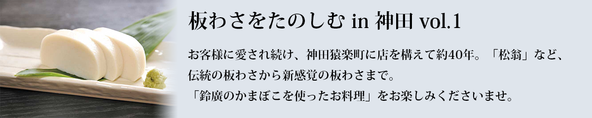 板わさを酒の肴に一杯。伝統の板わさから新感覚の板わさまで。 店主が腕を振るった「鈴廣のかまぼこを使ったお料理」をお楽しみくださいませ。