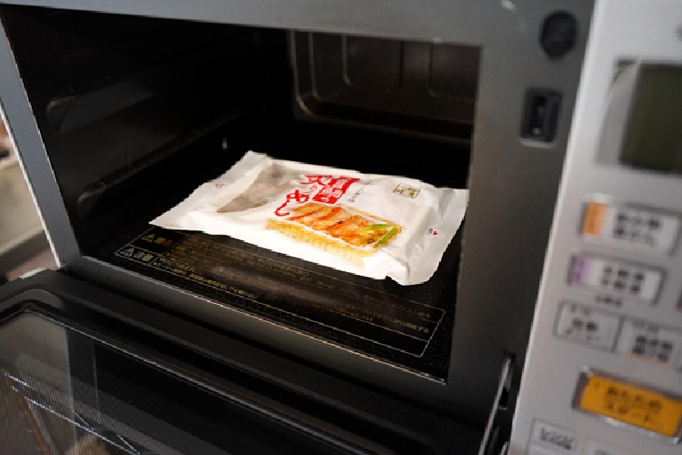 温め終わったら、すぐに袋から取り出さずに、少し時間を置いて商品を蒸していきます。
