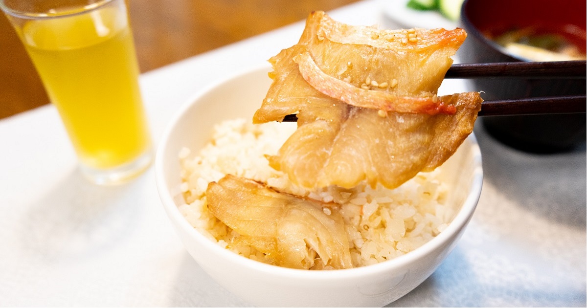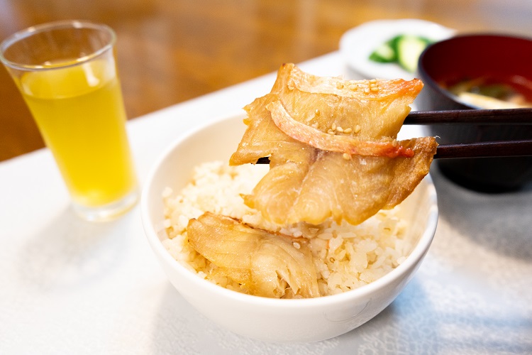 柔らかくて、ジューシーな金目鯛の身がご飯との相性抜群です!金目鯛の甘みと旨味が口いっぱいに広がっていきます。