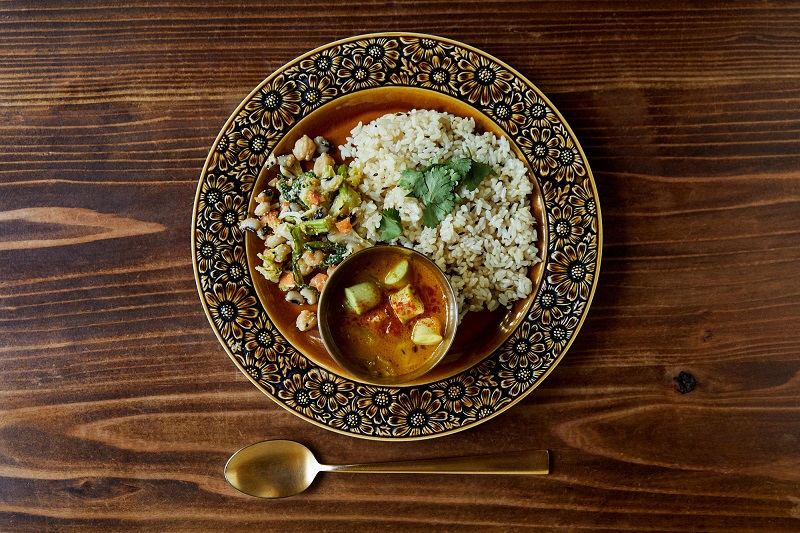 「油分や塩分を控えめにした、毎日食べられるカレーです。たとえるなら、みそ汁のようなさらっとした口当たり。シーソーセージはうまみも食べ応えもあるので、スパイスにも負けません。辛さは唐辛子の量で好みに調整できます。合わせるごはんは白米でもいいですが、私は玄米と白米の間の五分づきで、水加減は気持ち少なめにしています。食感がぱらっとして、ビタミンやミネラルも残るのでより健康的です」。