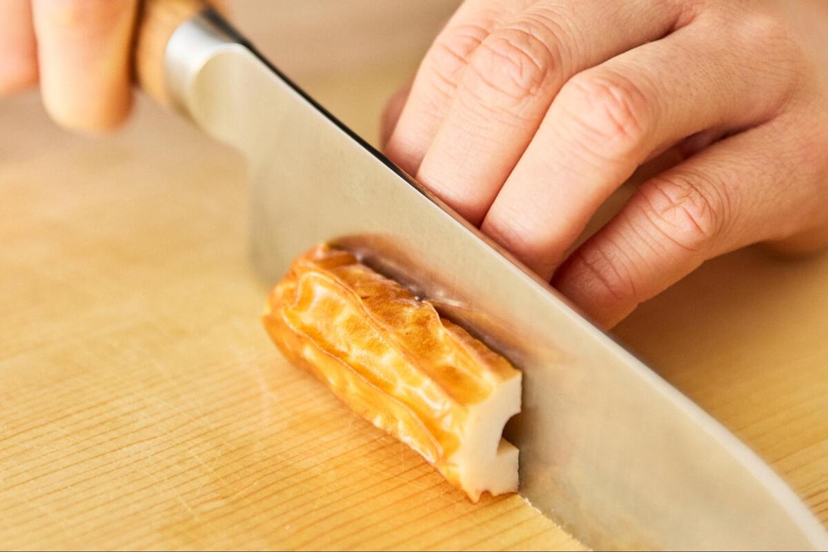 「百年ちくわ」自体にぎゅっと濃縮した深い味わいがありますので、揚げなくとも香ばしさや旨み、コクをしっかり楽しめます。