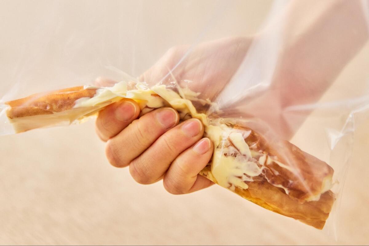 ② ビニール袋に百年ちくわ、ごま油、マヨネーズを入れて揉みながら和える。