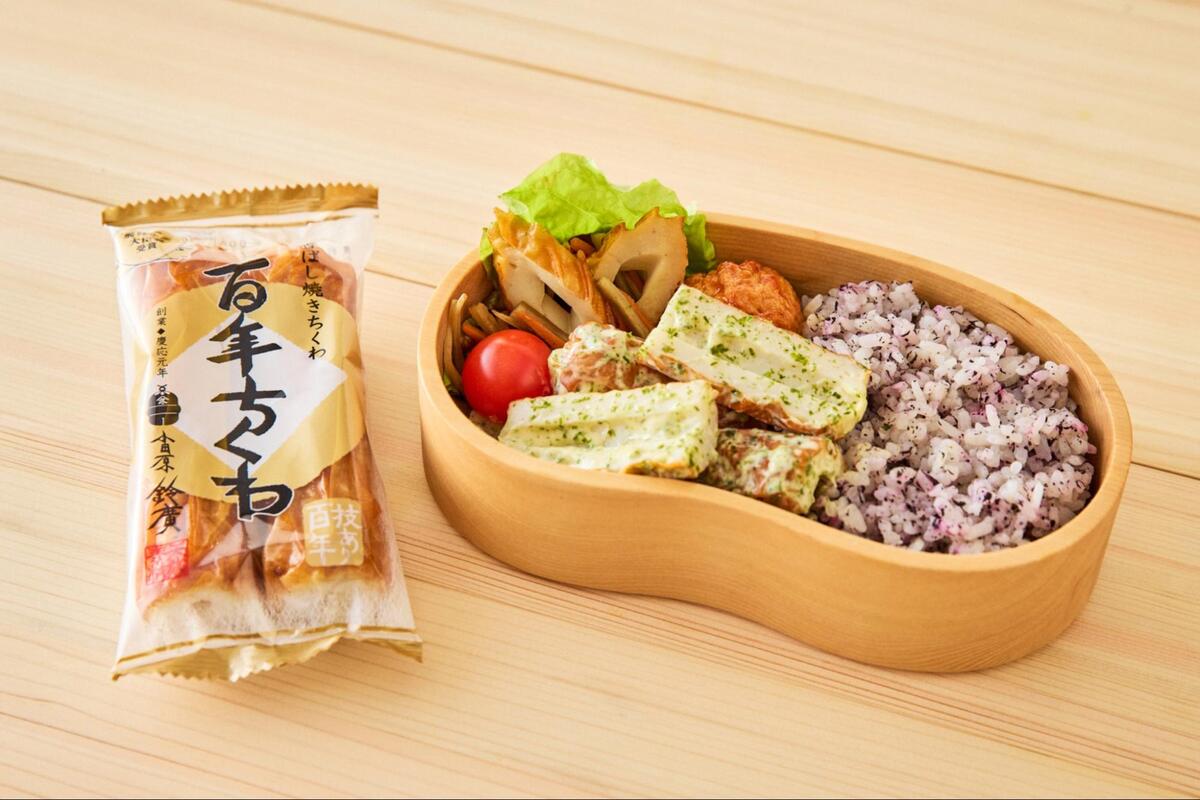 「百年ちくわ」一本にはお魚を1匹から2匹使っており魚肉タンパク質がたっぷり。いつものお弁当に加えてタンパク質を手軽に美味しくとりましょう。