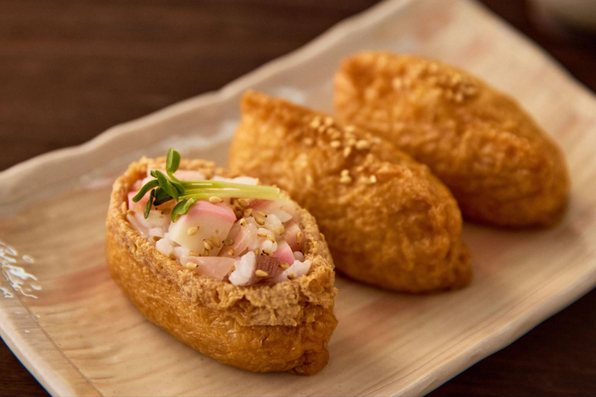 しなやかな弾力を生む旬のグチをメインに、季節に応じてタイ類やタラ類の魚をブレンドしています。いなり寿司の具材に加えると、彩りも食感も楽しい一品になります。
