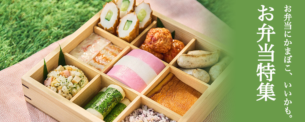 3種が入った「楽々おかずセット(い)」には「ぷちかま チーズ」、プリッとした弾力が自慢の「謹上蒲鉾」、海老や青のり入りの揚げかまぼこ「あげかま」を取り合わせました。どれもご飯にぴったりですので、お寿司にしたり、お弁当に添えたりとお楽しみください。