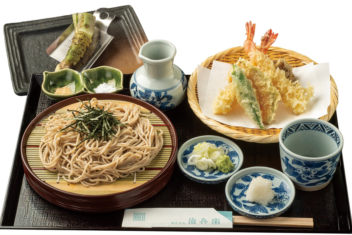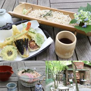 店舗敷地内にあるテラス席で食べる蕎麦は